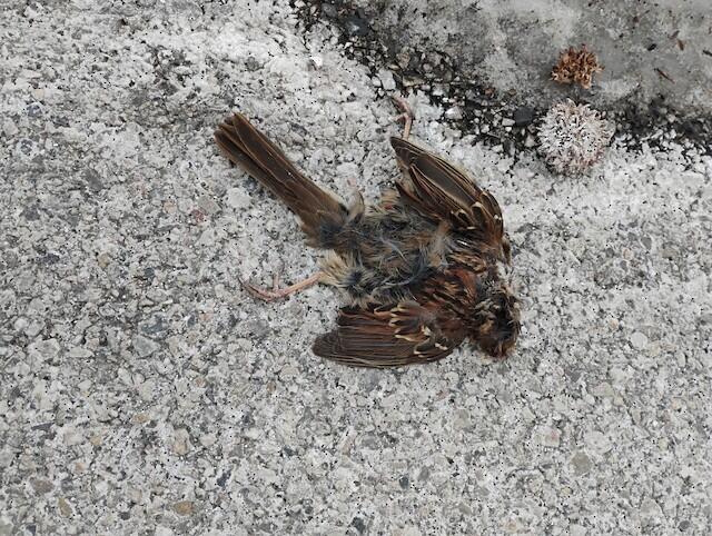 This has created yet another “perfect storm” of conditions for our feathered friends. They are congregating in much larger numbers than usual in places where we drivers are not used to encountering them. As they are generally malnourished at present, they’re less willing to abandon a potential food source, and their reaction times are slower than normal. Even so, given their feeding habits, these species typically fly within a few feet of the ground—right at car level, unlike our resident chickadees, nuthatches, titmice, and woodpeckers, who tend to drop down from greater heights to come to our feeders. And we humans have been battling cabin fever for over a week, making us increasingly eager to get out and about and perhaps a bit lead-footed on the gas. Put all of this together and there have been unprecedented numbers of small birds becoming casualties of car strikes over the past week or so.